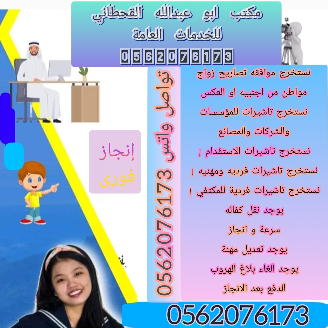 نتميز بدقة الأنجاز وسرعة في الاداء مراجعة جميع الدوائر الحكومية الخاصة بااستخراج تصاريح الزواج للسعوديين من اجنبية مقيمة. غير مقمية مواففة تصاريح زواج من الخارج استخراج تصريح زواج مفتوح او اجنبي من سعودية تخليص معاملات التجنيس زورونا تجدو مايسركم نتميز بسرعة الأنجاز والمصداقية بأقل الاسعار الدفع بعد انجاز التصريح سرعة بالتنفيذ ودقة بالمواعيد مئات العملاء يثقون بناء الدفع بعد الانجاز ثقة وامان ارضاكم للتواصل ولاستفسار واتساب