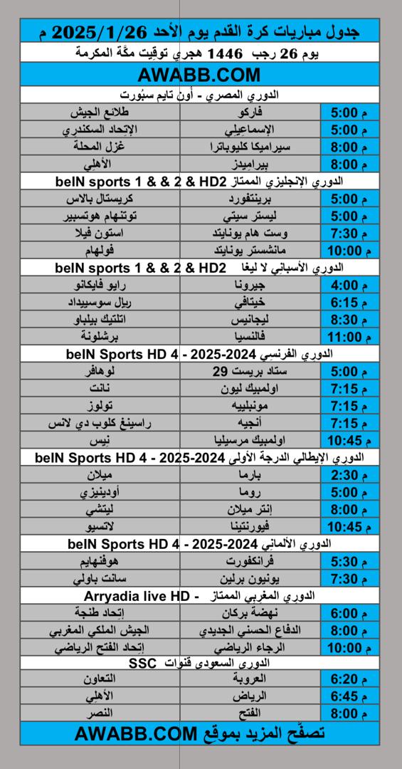 https://awabb.com/ad/%d8%ac%d8%af%d9%88%d9%84-%d9%85%d8%a8%d8%a7%d8%b1%d9%8a%d8%a7%d8%aa-%d9%83%d8%b1%d8%a9-%d8%a7%d9%84%d9%82%d8%af%d9%85-%d9%8a%d9%88%d9%85-%d8%a7%d9%84%d8%a3%d8%ad%d8%af-2025-1-26-%d9%85/