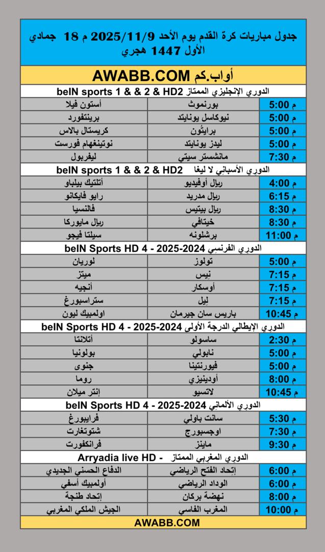 https://awabb.com/ad/%d8%ac%d8%af%d9%88%d9%84-%d9%85%d8%a8%d8%a7%d8%b1%d9%8a%d8%a7%d8%aa-%d9%83%d8%b1%d8%a9-%d8%a7%d9%84%d9%82%d8%af%d9%85-%d9%8a%d9%88%d9%85-%d8%a7%d9%84%d8%a3%d8%ad%d8%af-2025-11-9-%d9%85-18-%d8%ac%d9%85/