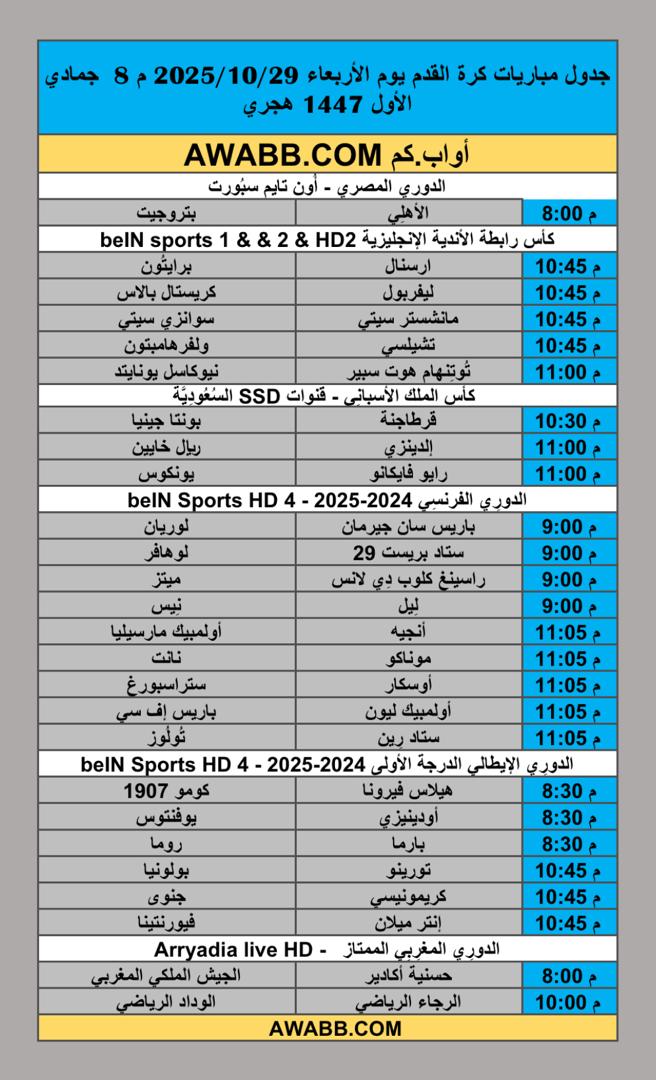 https://awabb.com/ad/%d8%ac%d8%af%d9%88%d9%84-%d9%85%d8%a8%d8%a7%d8%b1%d9%8a%d8%a7%d8%aa-%d9%83%d8%b1%d8%a9-%d8%a7%d9%84%d9%82%d8%af%d9%85-%d9%8a%d9%88%d9%85-%d8%a7%d9%84%d8%a3%d8%b1%d8%a8%d8%b9%d8%a7%d8%a1-2025-10-29/