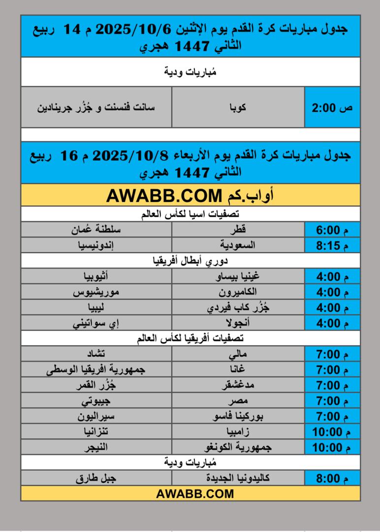 https://awabb.com/ad/%d8%ac%d8%af%d9%88%d9%84-%d9%85%d8%a8%d8%a7%d8%b1%d9%8a%d8%a7%d8%aa-%d9%83%d8%b1%d8%a9-%d8%a7%d9%84%d9%82%d8%af%d9%85-%d9%8a%d9%88%d9%85-%d8%a7%d9%84%d8%a5%d8%ab%d9%86%d9%8a%d9%86-2025-10-6-%d9%85-14/