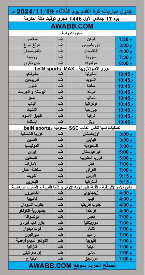 https://awabb.com/ad/%d8%ac%d8%af%d9%88%d9%84-%d9%85%d8%a8%d8%a7%d8%b1%d9%8a%d8%a7%d8%aa-%d9%83%d8%b1%d8%a9-%d8%a7%d9%84%d9%82%d8%af%d9%85-%d9%8a%d9%88%d9%85-%d8%a7%d9%84%d8%ab%d9%84%d8%a7%d8%ab%d8%a7%d8%a1-2024-11-19/