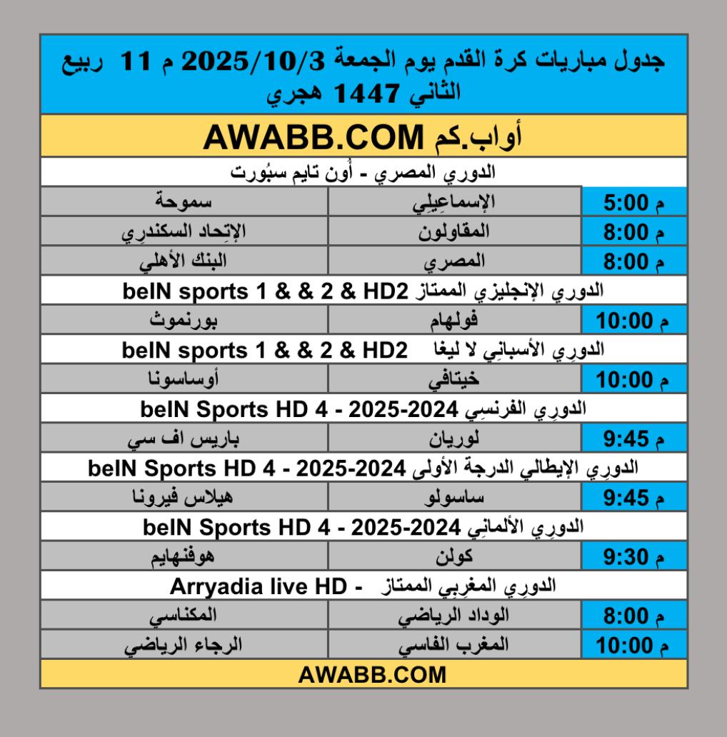 https://awabb.com/ad/%d8%ac%d8%af%d9%88%d9%84-%d9%85%d8%a8%d8%a7%d8%b1%d9%8a%d8%a7%d8%aa-%d9%83%d8%b1%d8%a9-%d8%a7%d9%84%d9%82%d8%af%d9%85-%d9%8a%d9%88%d9%85-%d8%a7%d9%84%d8%ac%d9%85%d8%b9%d8%a9-2025-10-3-%d9%85-11-%d8%b1/
