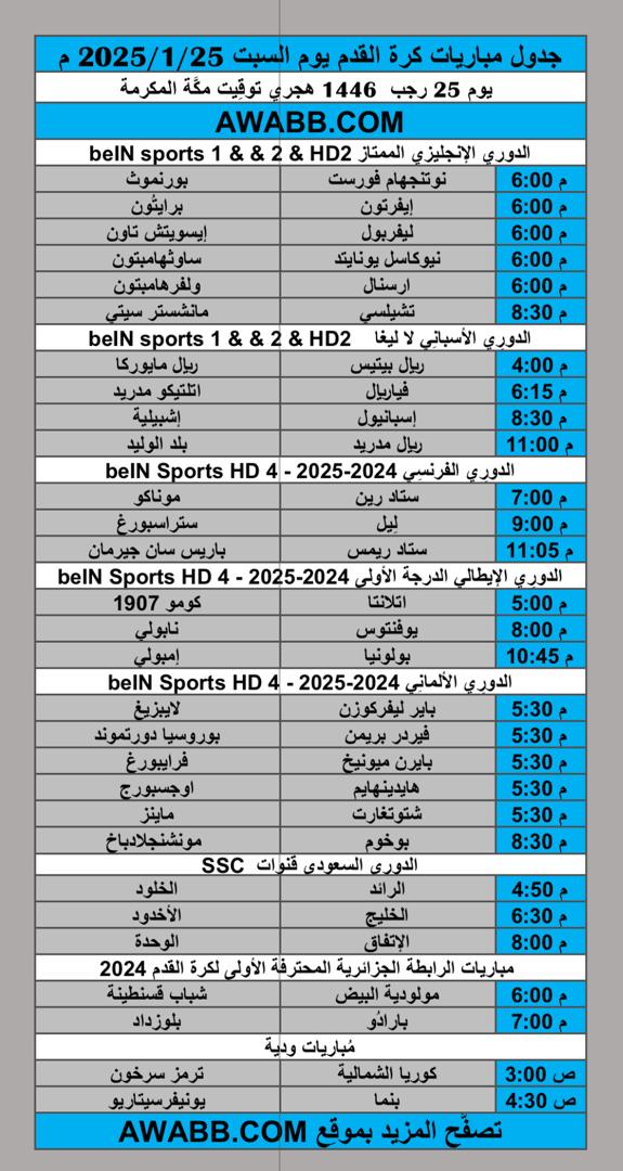 https://awabb.com/ad/%d8%ac%d8%af%d9%88%d9%84-%d9%85%d8%a8%d8%a7%d8%b1%d9%8a%d8%a7%d8%aa-%d9%83%d8%b1%d8%a9-%d8%a7%d9%84%d9%82%d8%af%d9%85-%d9%8a%d9%88%d9%85-%d8%a7%d9%84%d8%b3%d8%a8%d8%aa-2025-1-25-%d9%85/