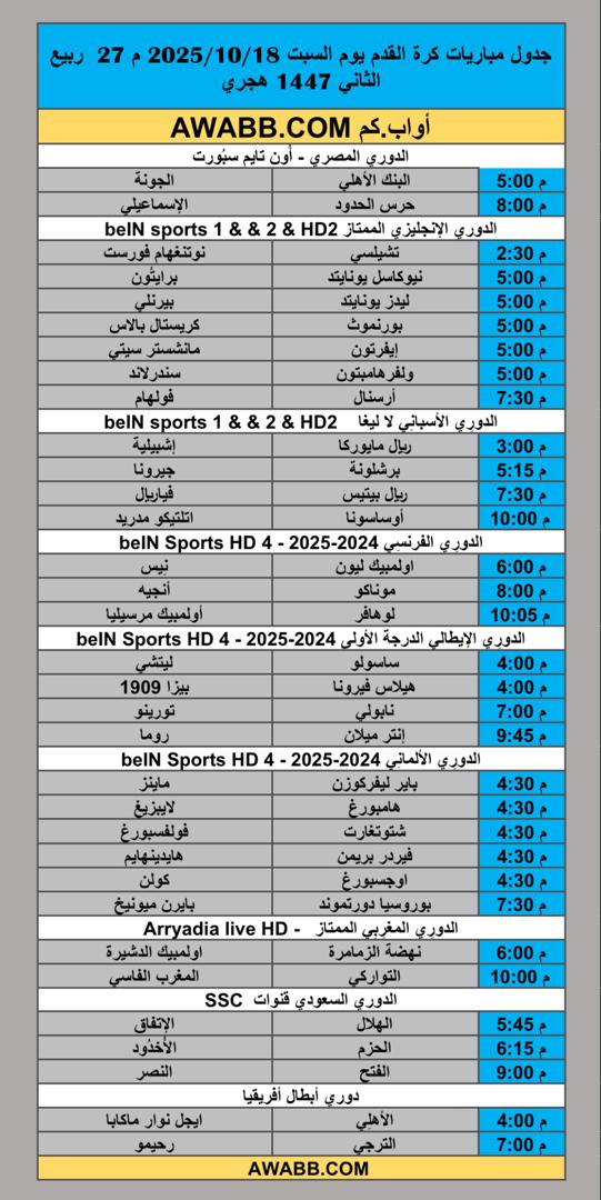 https://awabb.com/ad/%d8%ac%d8%af%d9%88%d9%84-%d9%85%d8%a8%d8%a7%d8%b1%d9%8a%d8%a7%d8%aa-%d9%83%d8%b1%d8%a9-%d8%a7%d9%84%d9%82%d8%af%d9%85-%d9%8a%d9%88%d9%85-%d8%a7%d9%84%d8%b3%d8%a8%d8%aa-2025-10-18-%d9%85-27-%d8%b1/