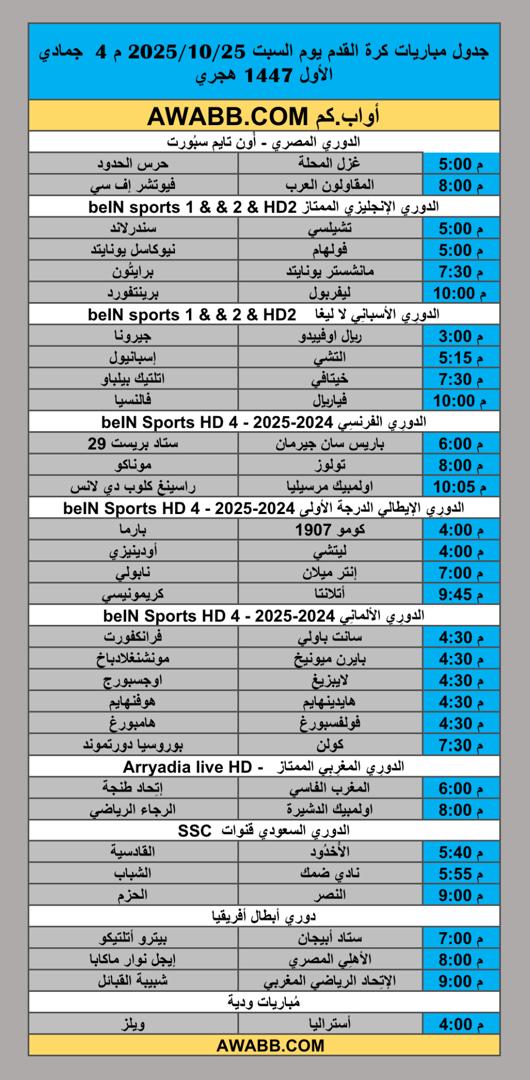 https://awabb.com/ad/%d8%ac%d8%af%d9%88%d9%84-%d9%85%d8%a8%d8%a7%d8%b1%d9%8a%d8%a7%d8%aa-%d9%83%d8%b1%d8%a9-%d8%a7%d9%84%d9%82%d8%af%d9%85-%d9%8a%d9%88%d9%85-%d8%a7%d9%84%d8%b3%d8%a8%d8%aa-2025-10-25-%d9%85-4-%d8%ac-2/