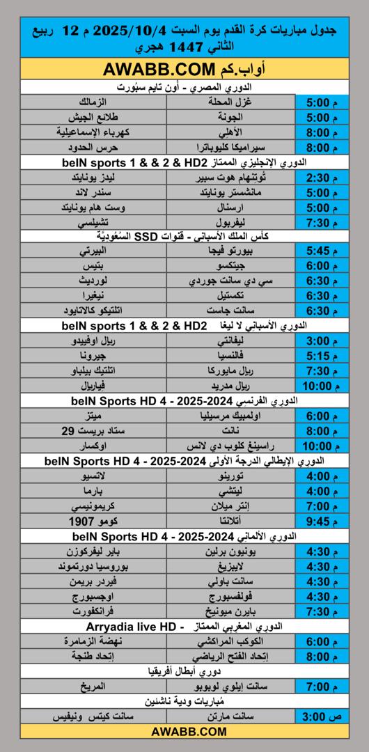 https://awabb.com/ad/%d8%ac%d8%af%d9%88%d9%84-%d9%85%d8%a8%d8%a7%d8%b1%d9%8a%d8%a7%d8%aa-%d9%83%d8%b1%d8%a9-%d8%a7%d9%84%d9%82%d8%af%d9%85-%d9%8a%d9%88%d9%85-%d8%a7%d9%84%d8%b3%d8%a8%d8%aa-2025-10-4-%d9%85-12-%d8%b1%d8%a8/