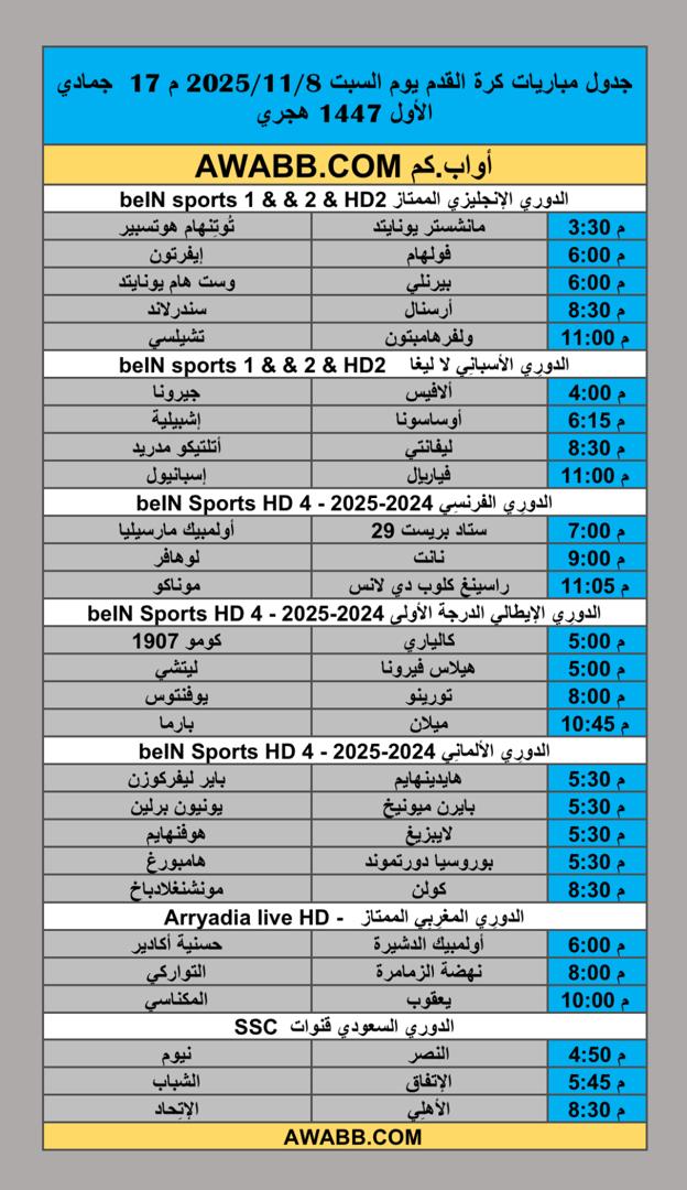 https://awabb.com/ad/%d8%ac%d8%af%d9%88%d9%84-%d9%85%d8%a8%d8%a7%d8%b1%d9%8a%d8%a7%d8%aa-%d9%83%d8%b1%d8%a9-%d8%a7%d9%84%d9%82%d8%af%d9%85-%d9%8a%d9%88%d9%85-%d8%a7%d9%84%d8%b3%d8%a8%d8%aa-2025-11-8-%d9%85-17-%d8%ac%d9%85/