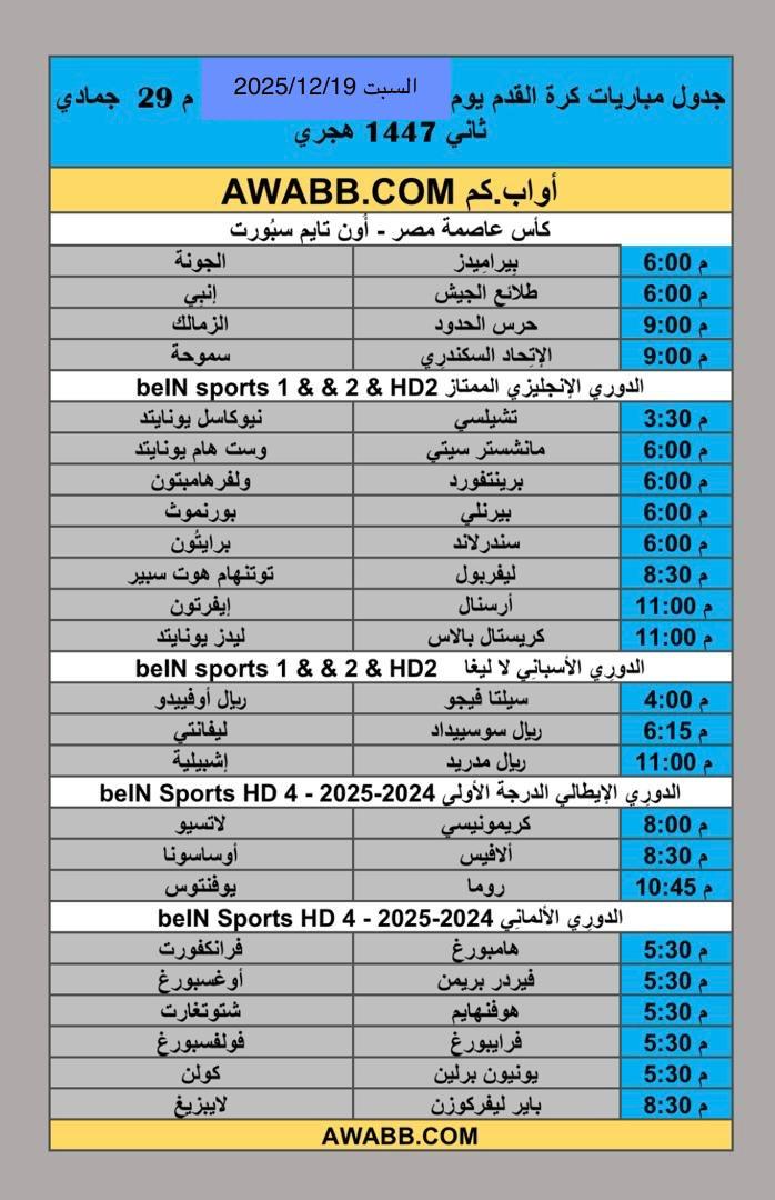 https://awabb.com/ad/%d8%ac%d8%af%d9%88%d9%84-%d9%85%d8%a8%d8%a7%d8%b1%d9%8a%d8%a7%d8%aa-%d9%83%d8%b1%d8%a9-%d8%a7%d9%84%d9%82%d8%af%d9%85-%d9%8a%d9%88%d9%85-%d8%a7%d9%84%d8%b3%d8%a8%d8%aa-2025-12-20-%d9%85-29-%d8%ac/