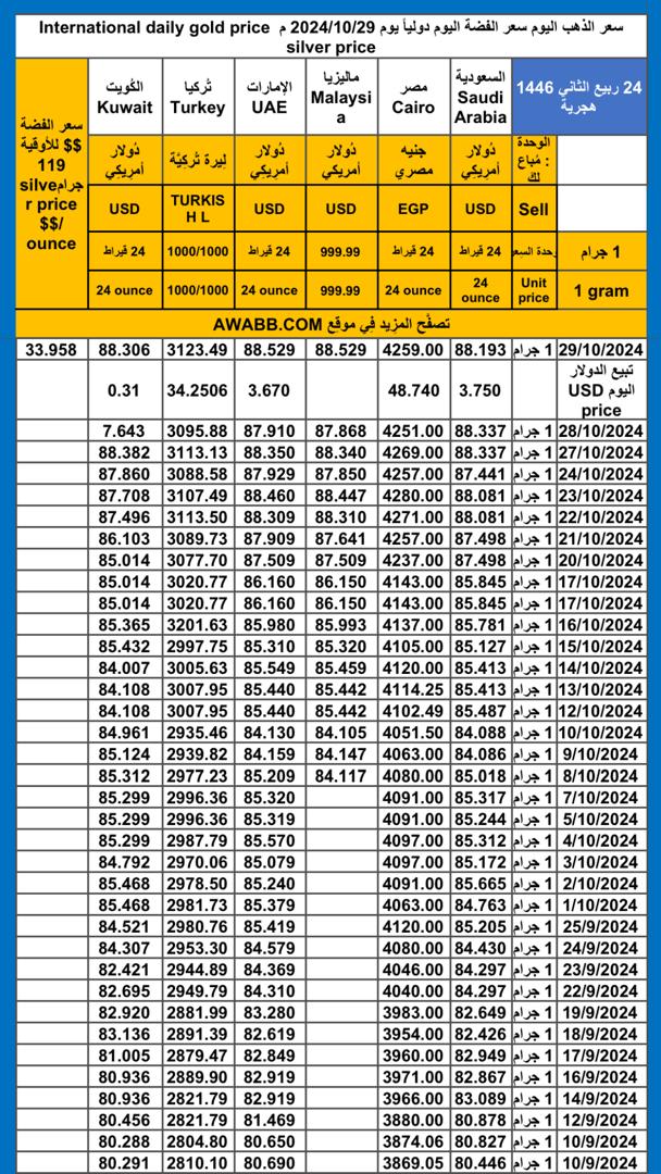 https://awabb.com/ad/%d8%b3%d8%b9%d8%b1-%d8%a7%d9%84%d8%b0%d9%87%d8%a8-%d8%a7%d9%84%d9%8a%d9%88%d9%85-%d8%b3%d8%b9%d8%b1-%d8%a7%d9%84%d9%81%d8%b6%d8%a9-%d8%af%d9%88%d9%84%d9%8a%d8%a7%d9%8b-%d9%8a%d9%88%d9%85-2024-10-29/