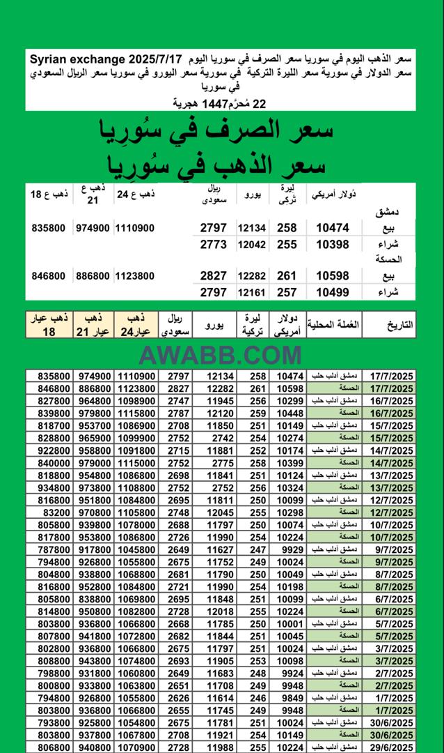 https://awabb.com/ad/%d8%b3%d8%b9%d8%b1-%d8%a7%d9%84%d8%b0%d9%87%d8%a8-%d8%a7%d9%84%d9%8a%d9%88%d9%85-%d9%81%d9%8a-%d8%b3%d9%88%d8%b1%d9%8a%d8%a7-%d8%b3%d8%b9%d8%b1-%d8%a7%d9%84%d8%b5%d8%b1%d9%81-%d9%81%d9%8a-%d8%b3-34/
