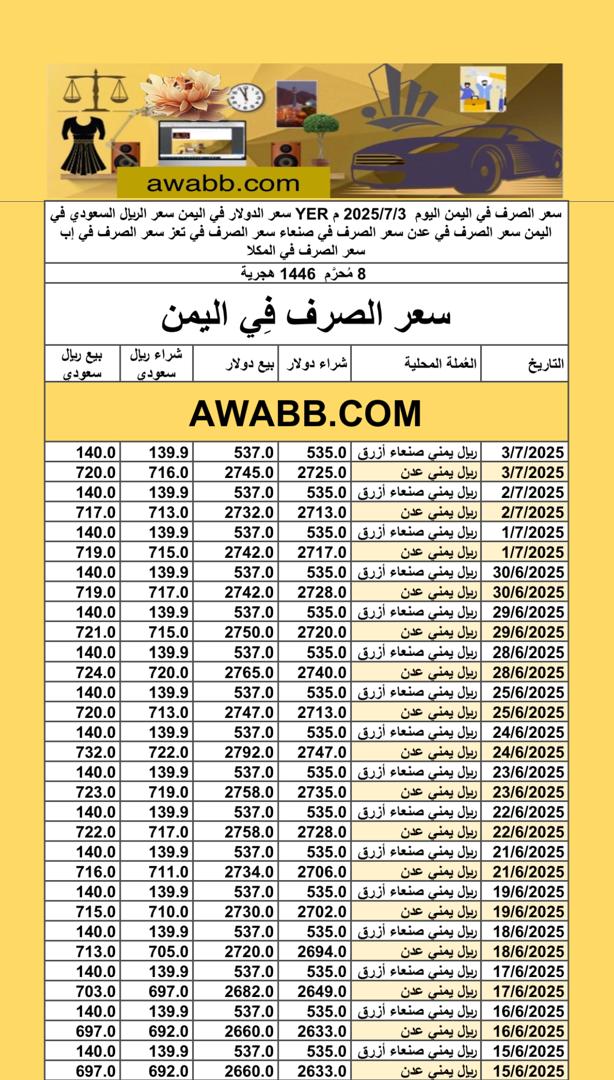 https://awabb.com/ad/%d8%b3%d8%b9%d8%b1-%d8%a7%d9%84%d8%b5%d8%b1%d9%81-%d9%81%d9%8a-%d8%a7%d9%84%d9%8a%d9%85%d9%86-%d8%a7%d9%84%d9%8a%d9%88%d9%85-2025-7-3-%d9%85-yer-%d8%b3%d8%b9%d8%b1-%d8%a7%d9%84%d8%af%d9%88%d9%84%d8%a7/