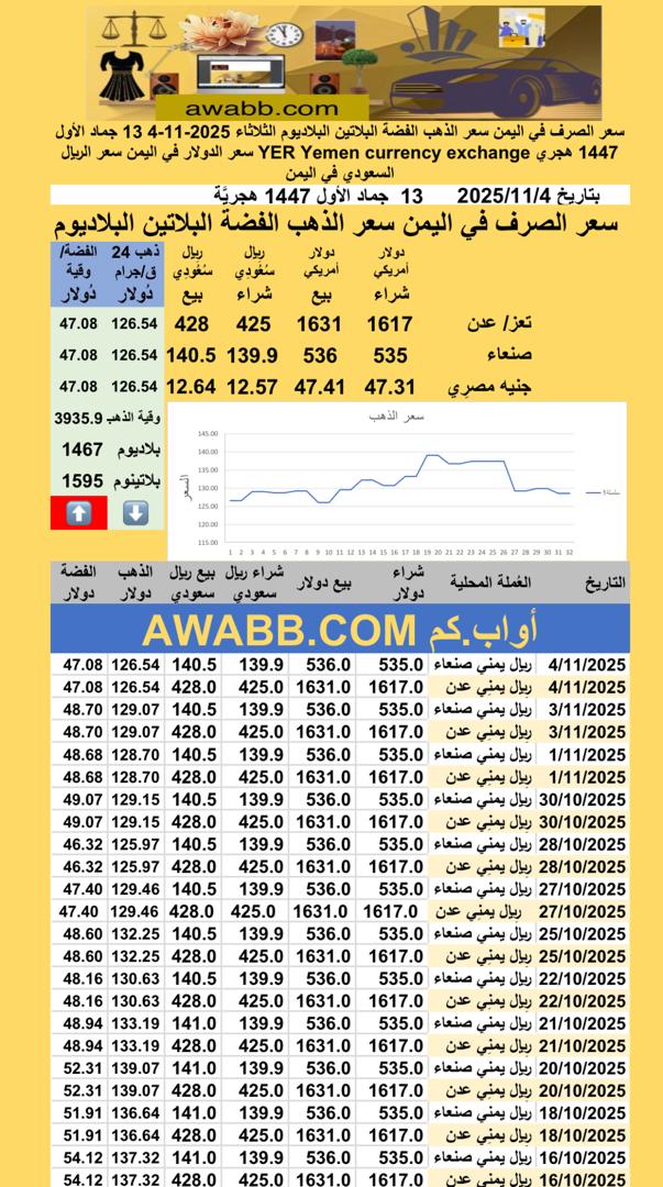 https://awabb.com/ad/%d8%b3%d8%b9%d8%b1-%d8%a7%d9%84%d8%b5%d8%b1%d9%81-%d9%81%d9%8a-%d8%a7%d9%84%d9%8a%d9%85%d9%86-%d8%b3%d8%b9%d8%b1-%d8%a7%d9%84%d8%b0%d9%87%d8%a8-%d8%a7%d9%84%d9%81%d8%b6%d8%a9-%d8%a7%d9%84%d8%a8-13/