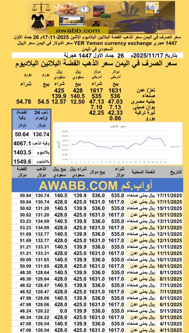 https://awabb.com/ad/%d8%b3%d8%b9%d8%b1-%d8%a7%d9%84%d8%b5%d8%b1%d9%81-%d9%81%d9%8a-%d8%a7%d9%84%d9%8a%d9%85%d9%86-%d8%b3%d8%b9%d8%b1-%d8%a7%d9%84%d8%b0%d9%87%d8%a8-%d8%a7%d9%84%d9%81%d8%b6%d8%a9-%d8%a7%d9%84%d8%a8-24/