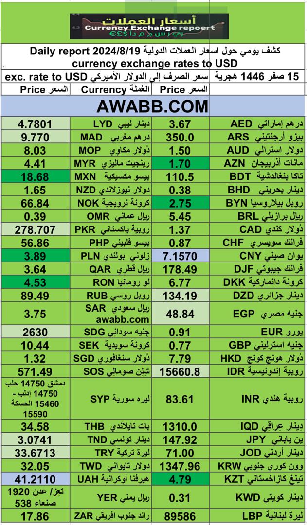 https://awabb.com/ad/%d9%83%d8%b4%d9%81-%d9%8a%d9%88%d9%85%d9%8a-%d8%ad%d9%88%d9%84-%d8%a7%d8%b3%d8%b9%d8%a7%d8%b1-%d8%a7%d9%84%d8%b9%d9%85%d9%84%d8%a7%d8%aa-%d8%a7%d9%84%d8%af%d9%88%d9%84%d9%8a%d8%a9-2024-8-19-daily-repo/